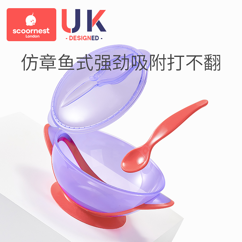 Nest Baby Suction Bowl Spoon Set with Lid Newborn Silicone Food Bowl Spoon Soft Spoon Anti-Fall Burn Baby