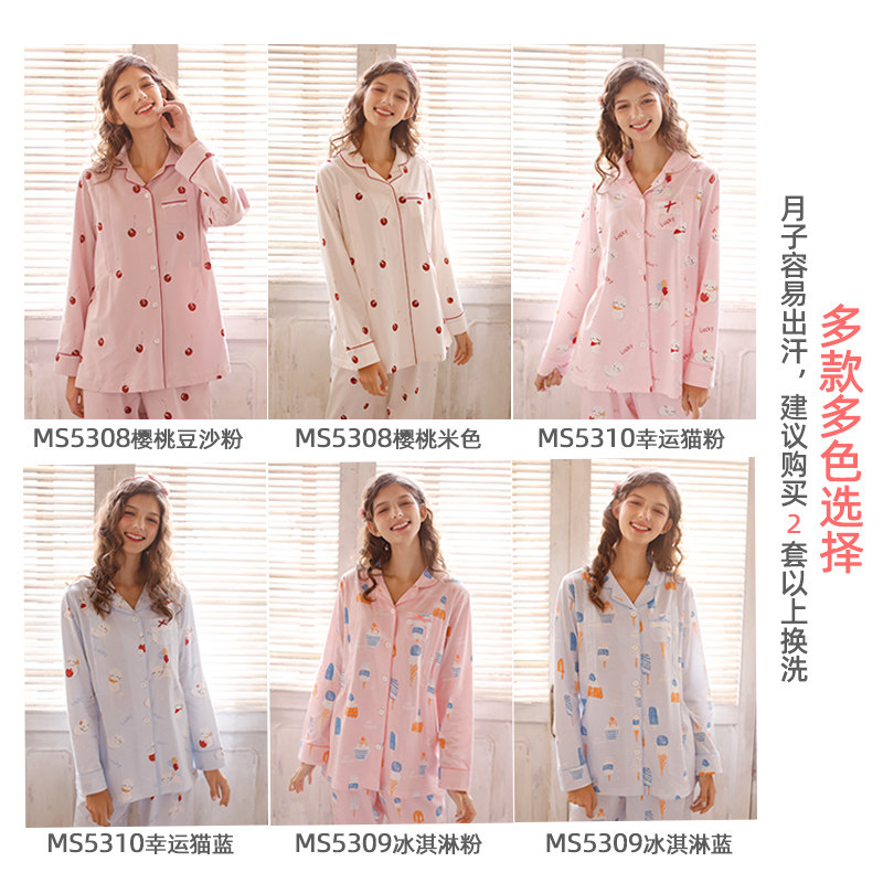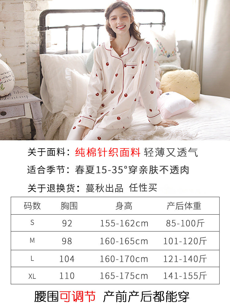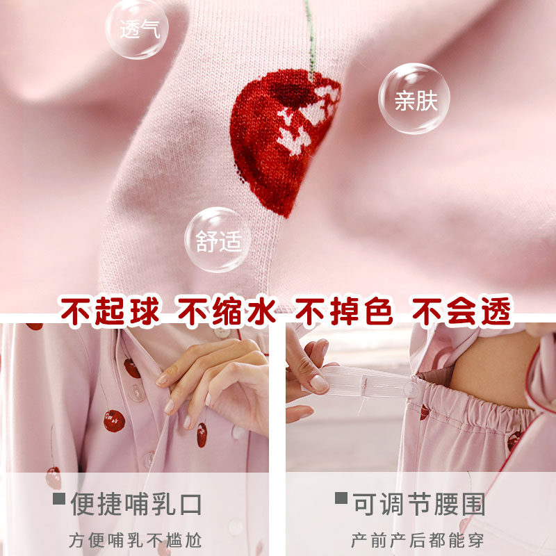 Subsuit May Postpartum Postnatal Pure Cotton Pregnant Pregnant Woman Breastfeeding Pyjamas Laces Breastfeeding Spring and Autumn Home Suit Suit