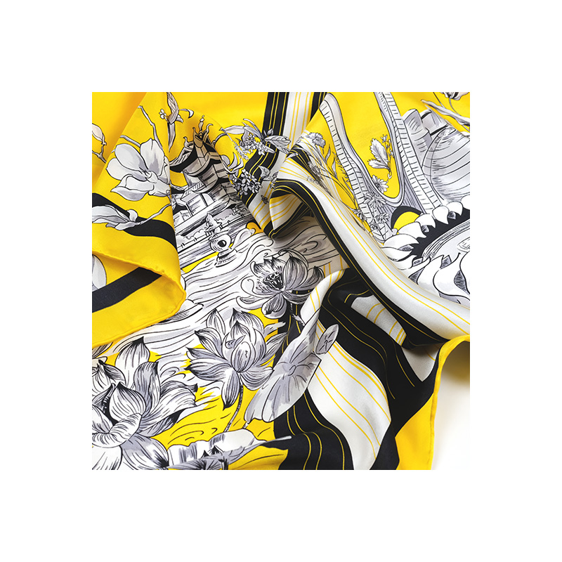 Lucky Taste Hangzhou Series 100% Mulberry Silk Square Scarf Ladies Silk Scarf Versatile Silk Scarf Hangzhou Asian Games