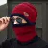 Winter knitted hat Men's warm collar hat plus velvet thickened cold hat Riding windproof hat Korean version