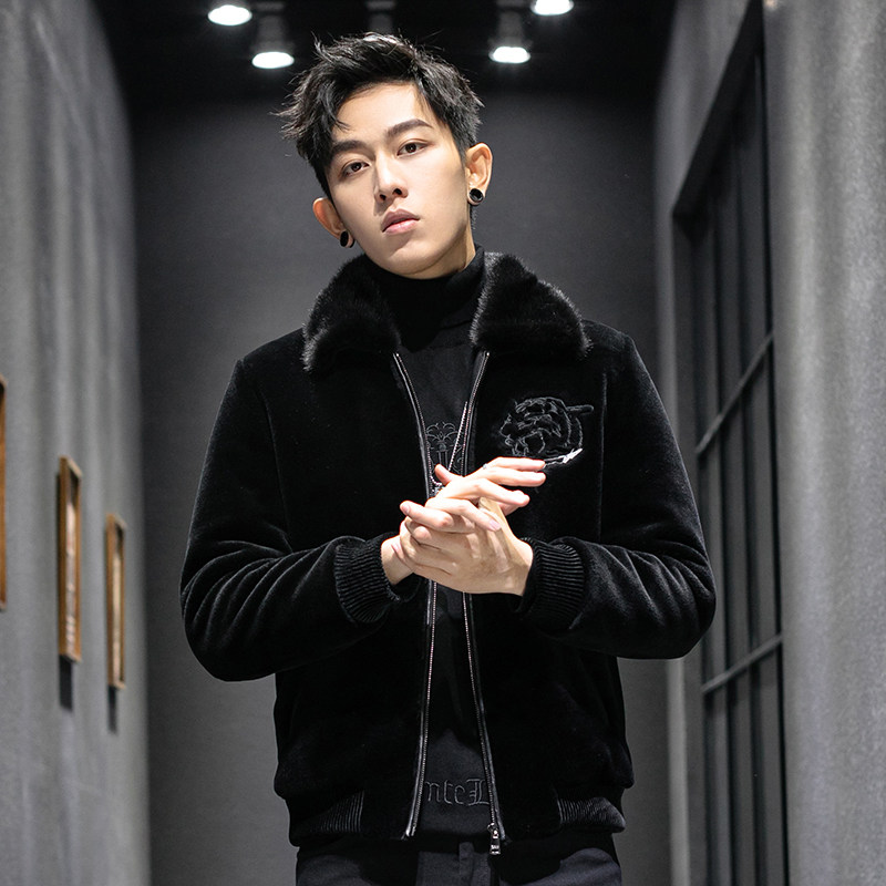 Sheep shearing men's short embroidered Haining leather jacket leather down jacket mink lapel fur all-in-one fur jacket tide