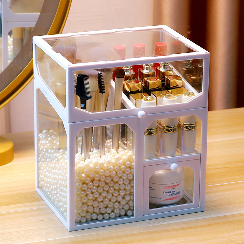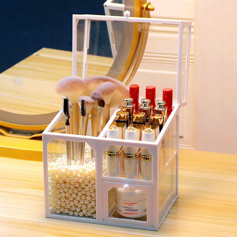 Red Cosmetics Collection Box Glass Cosmetics Brush Brush Backet Desktop Lift Cover Red Box Dust-proof Belt Lid Storage Box