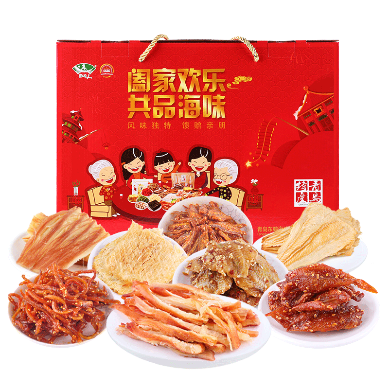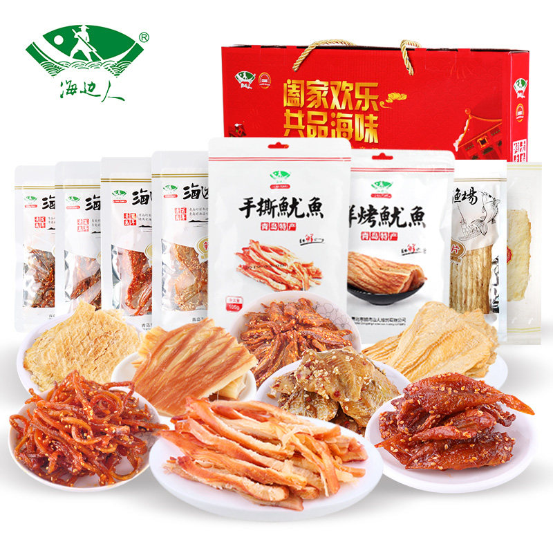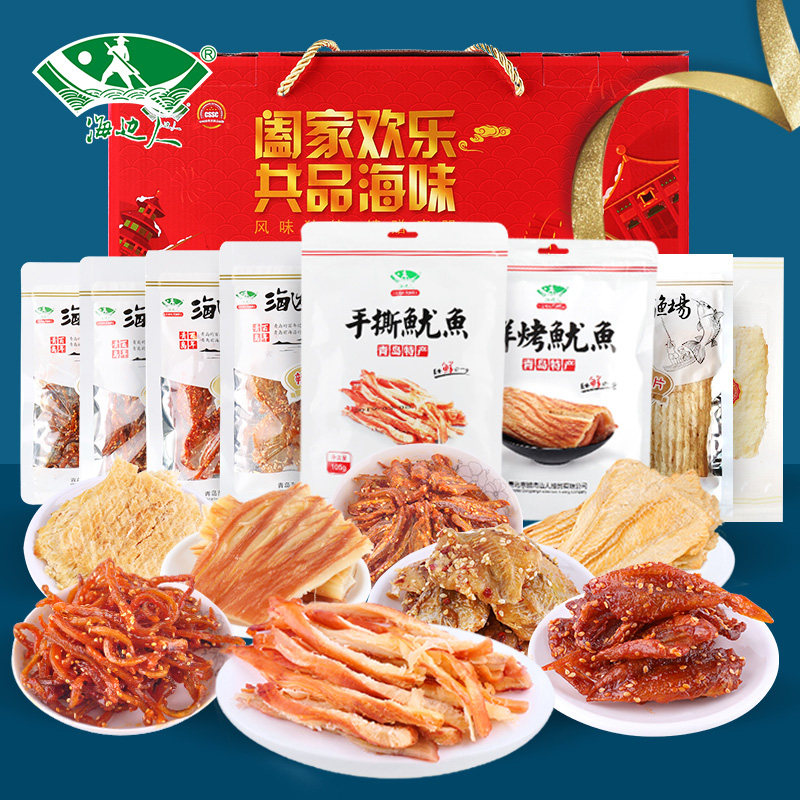 Seaside people Qingdao specialty seafood snack gift package instant squid shredded grilled fish fillet New Year gift box
