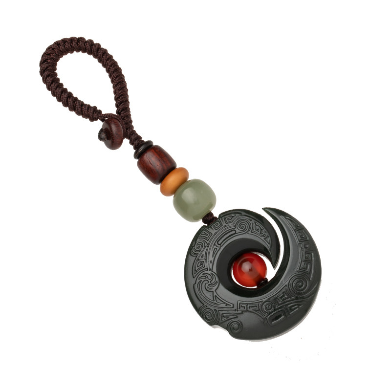 Park room and Tian Qingyu Ruyi back pattern plate Car keychain pendant male high-end gift female jade personality pendant
