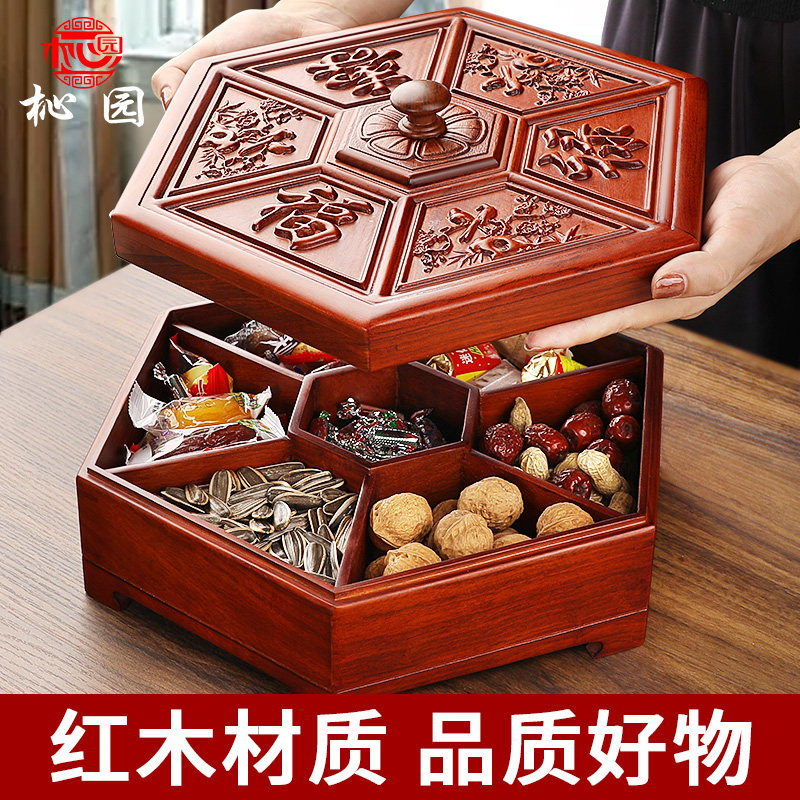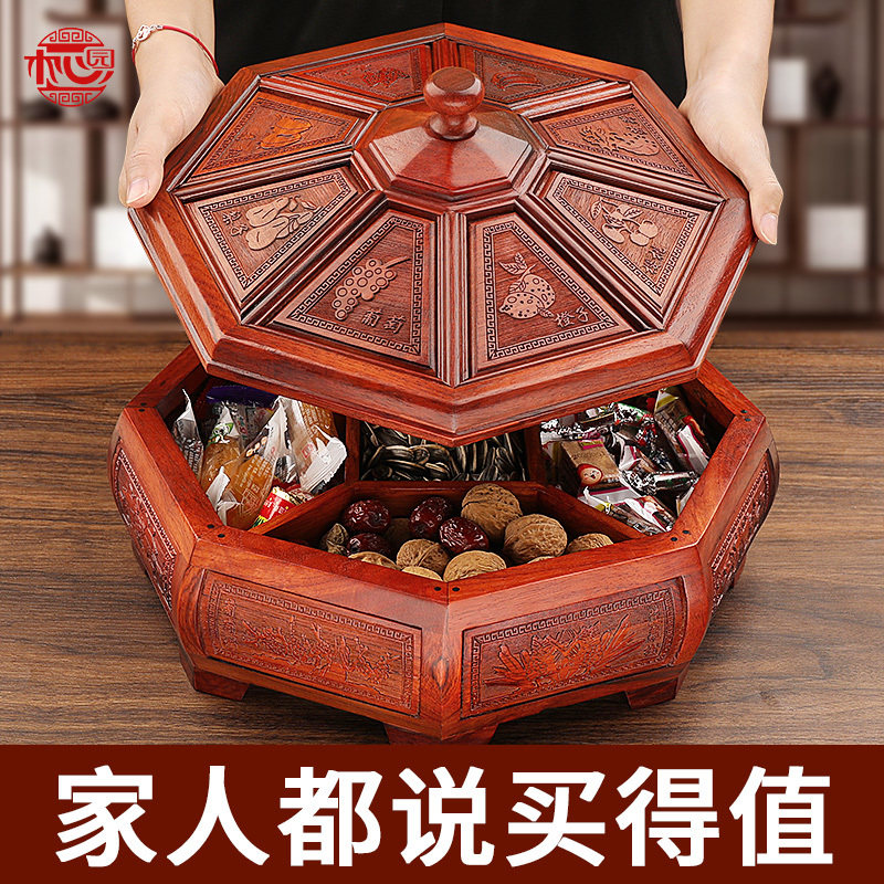 Mahogany Fruit Plate New Year Creative Living Room Home Coffee Table Chinese Nut Snack Plate Wooden Candy Dried Fruit Storage Box