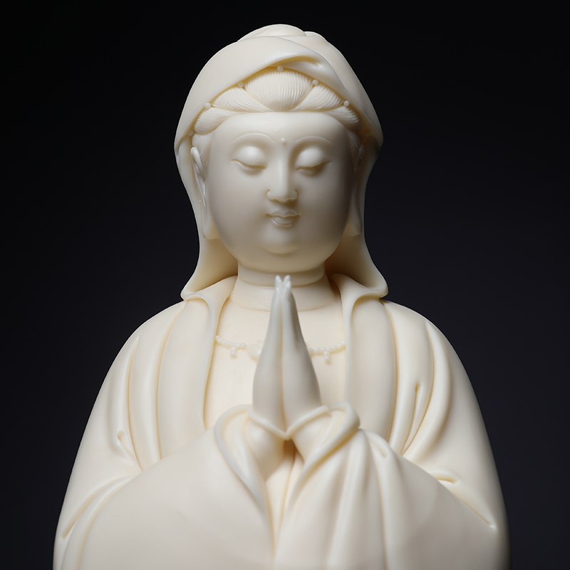 Dai Yutang ceramic ornaments "Jade Yellow Porcelain Co-op Guanyin Station Image" Lin Jiansheng Buddha statue artist residence jewelry