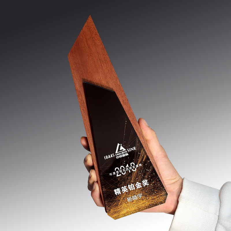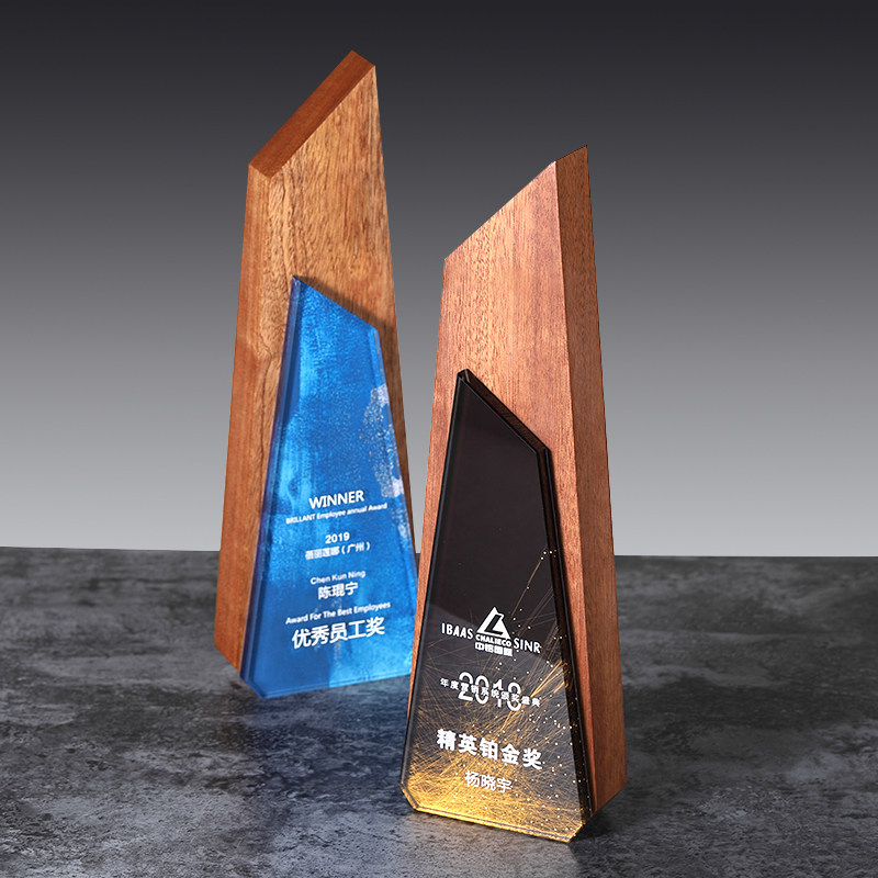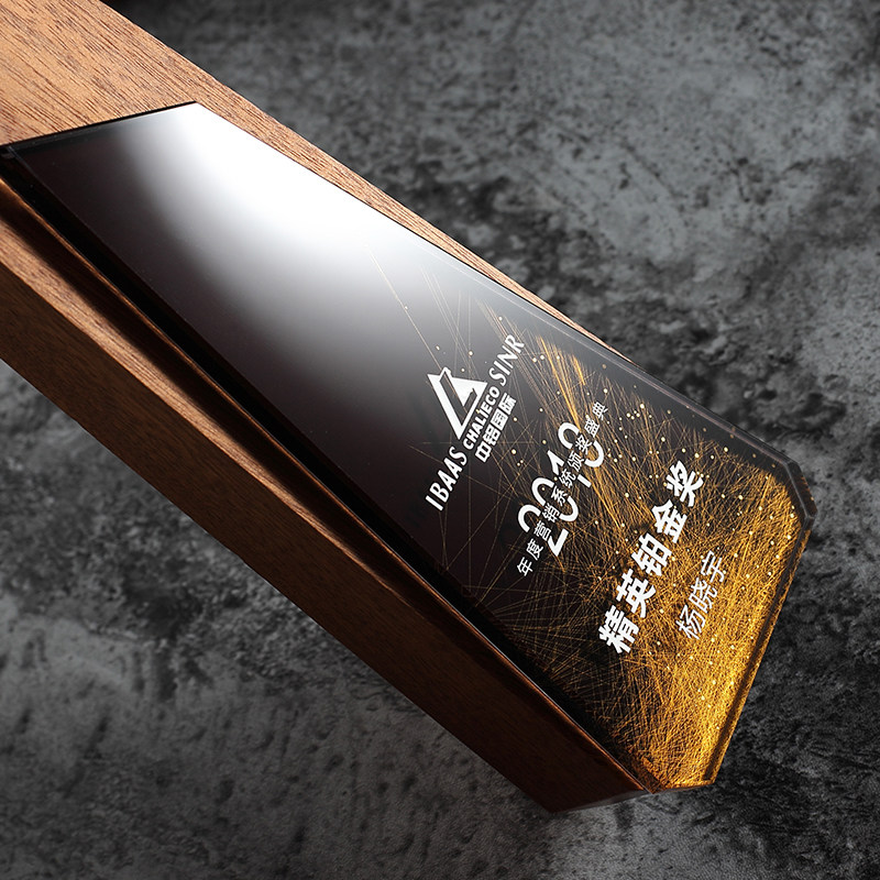 Solid wood color printing wood trophy crystal medal creative customization production annual meeting outstanding staff sales champion