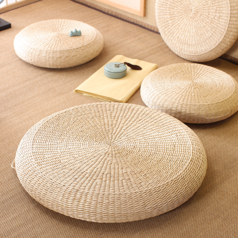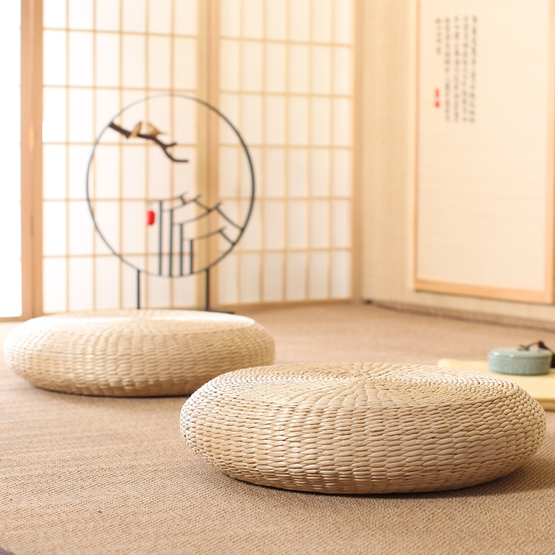 Tea ceremony straw woven tatami mat Meditation and Buddha worship mat Thickened meditation mat Floor cushion Rattan woven Pu pad Pu grass futon