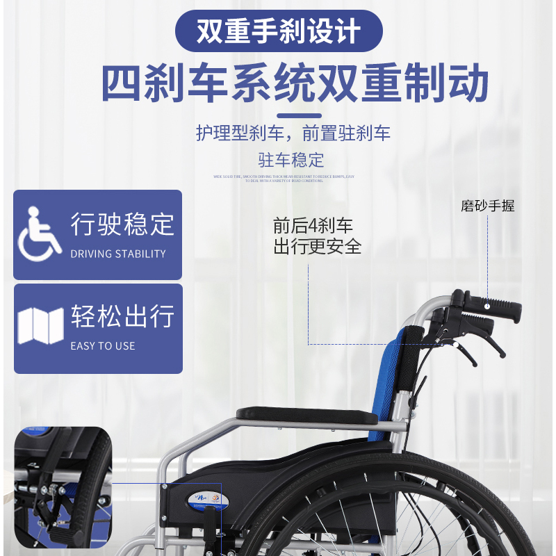 Kai Ocean Wheelchair Old Man Folding Light Small Travel Ultra Light Portable Elderly Trolley Psychless Disabled Adult Scooter
