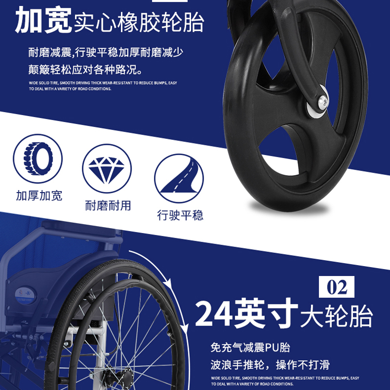 Thickened Cushion Widening Wheelchair Bankable Electric Back Folding Large Wheel Solid Ferry Portable Bull Gluten Cloth Cushion Luxurious Comfort Lightweight Fold