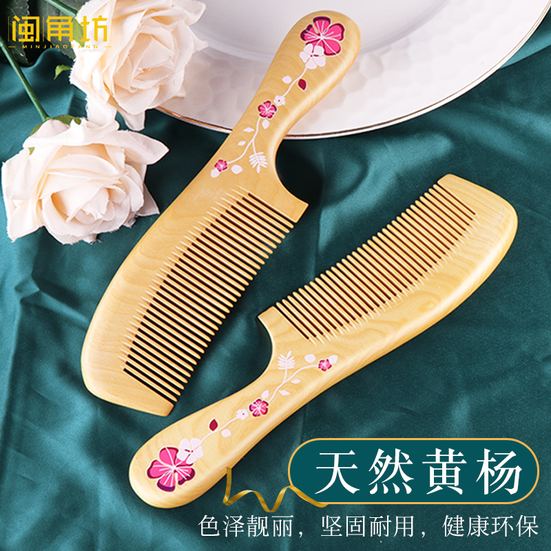 Min Angle Workshop Boutique Yellow Poplar Wood Comb Natural Static Defense Male And Female Special Long Hair Parent Lover Gift Giving Gift