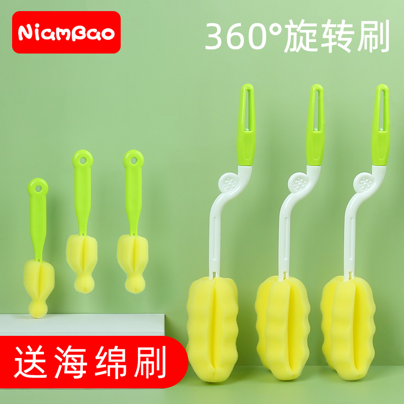 Baby bottle brush scrubbing sponge pacifier cleaning artifact set 360 degree rotation cleaning small shabu utensils