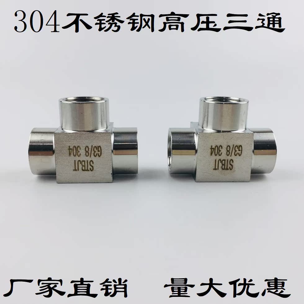 304 stainless steel high pressure inner wire tee thickened inner thread tee 1 8 1 4 3 8 1 2 4 taps