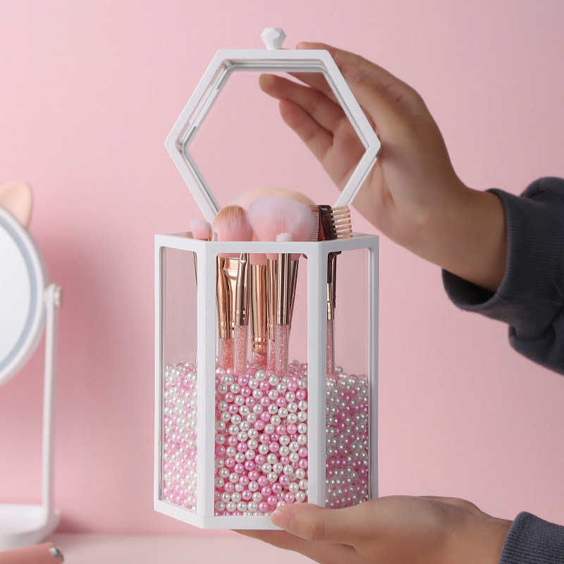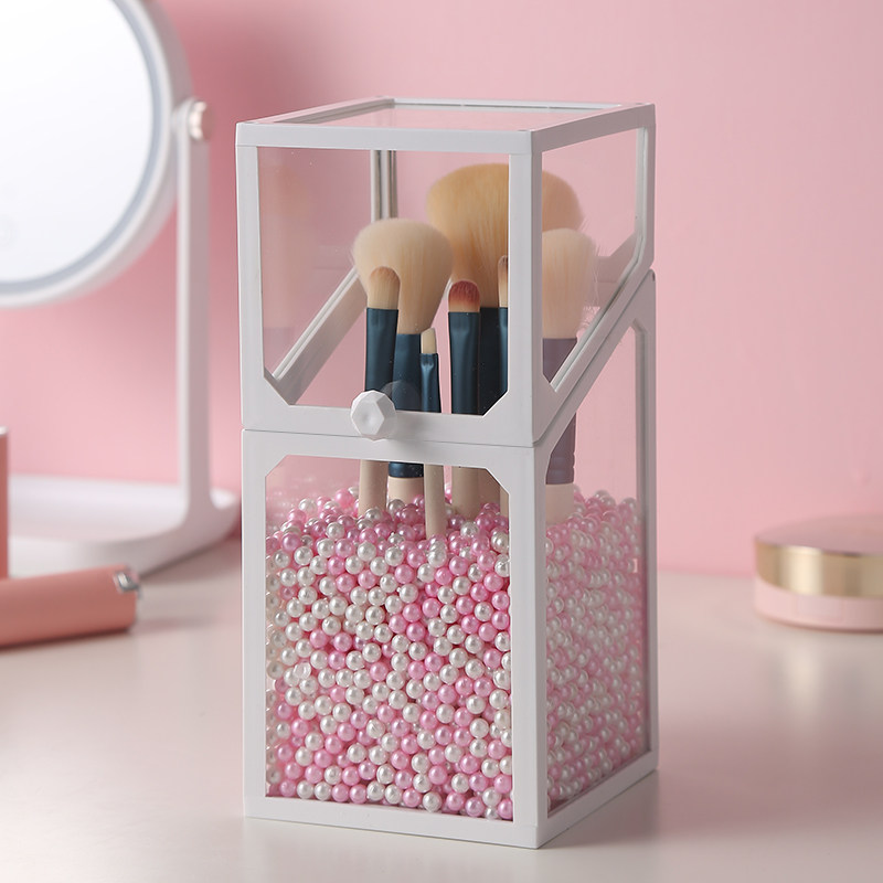 Glass brush bucket makeup brush storage box brush storage bucket pen holder dust-proof makeup bucket with lid cosmetic storage