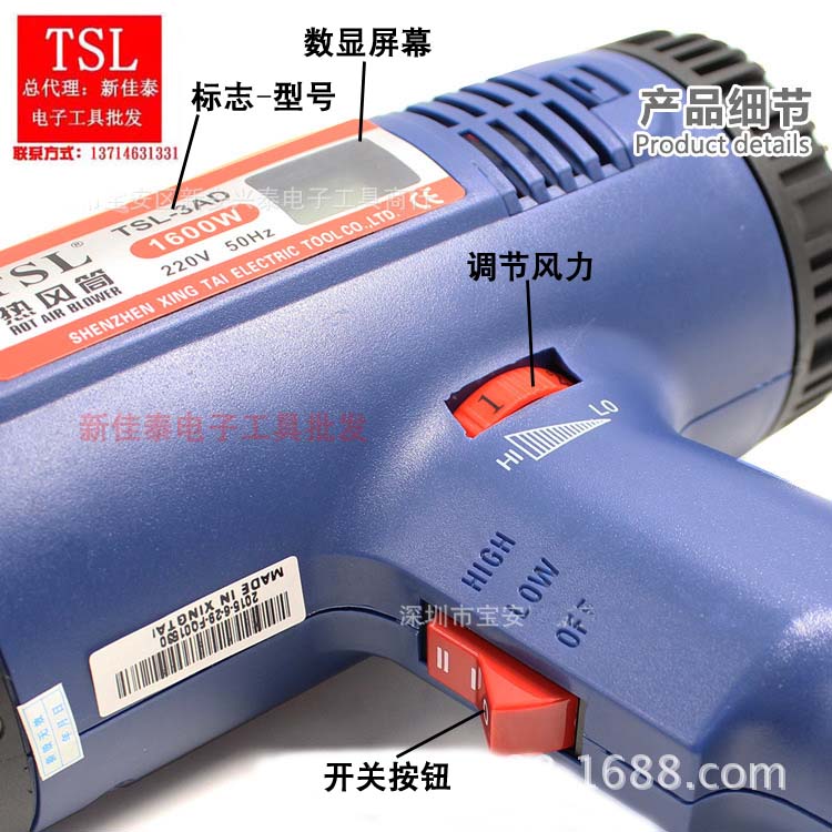Hot air cylinder hot wind gun number of industrial hot air welding guns TSL 3AD1600W electronic thermoregulation hot wind gun heat shrink tube