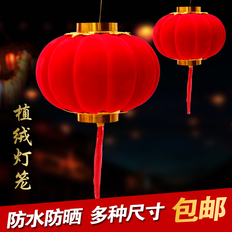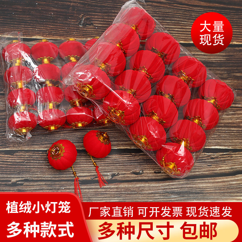 Big red float small lantern hanging tree mini festive New Year wedding decorated red lantern scene layout outdoors