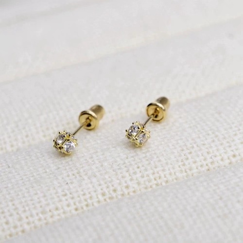 18K gold inlaid mosanstone ball earshot female simulation diamond mini small earbone minimalist stylish round earwear