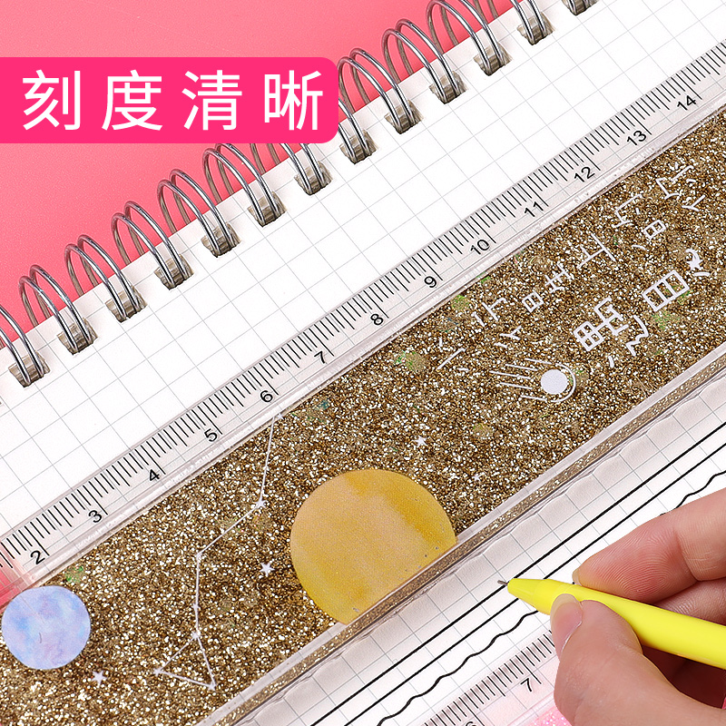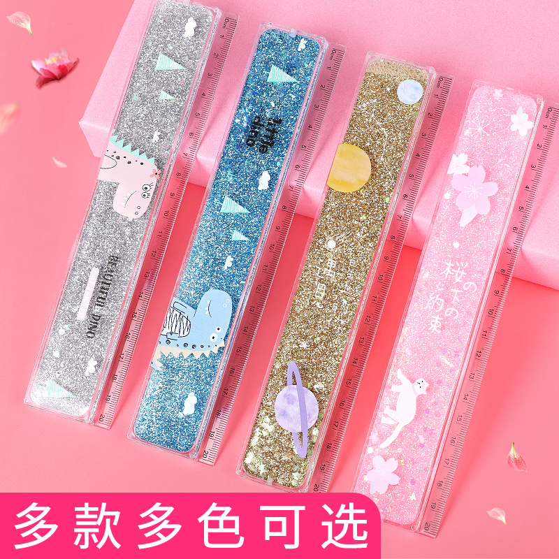 Creative quicksand ruler with wavy line ruler elementary school students with cute cartoon into the oil dream cherry blossom ruler 20cm plastic ruler net red same quicksand liquid stationery ruler boy girl girl
