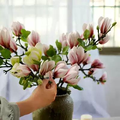 High-end budding magnolia simulation bouquet living room dining table fake flower decoration decorative floral set vase flower arrangement silk flower