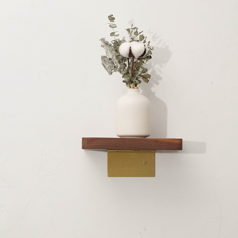 Nordic simple brass walnut perforated installation bathroom shelf Powder room storage shelf Bathroom creative wall hanging