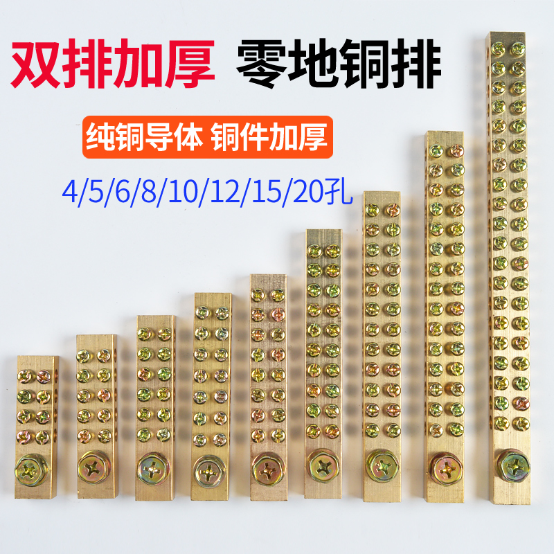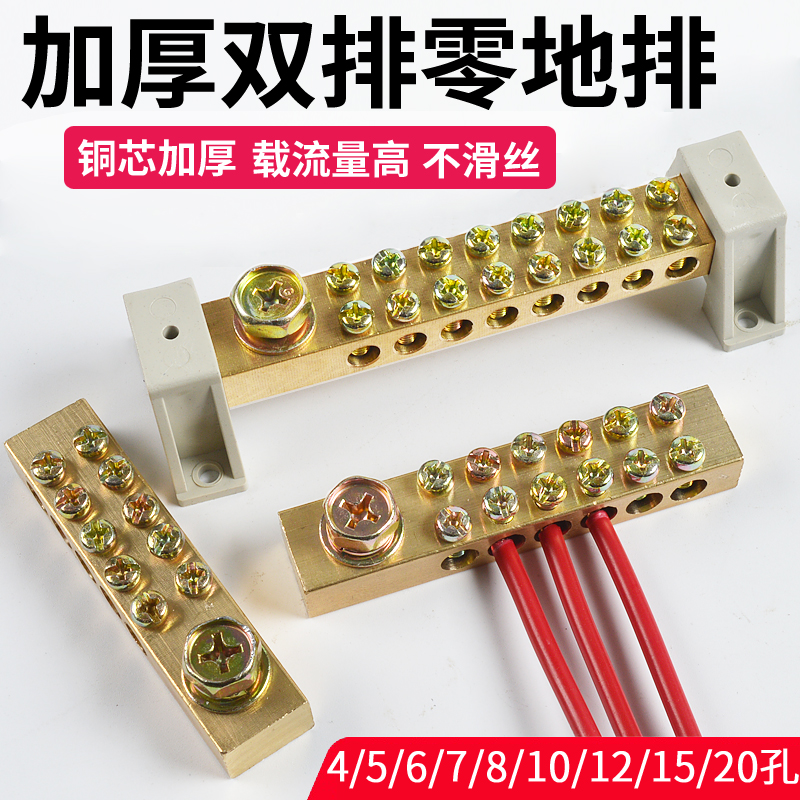 12*18 grounding copper row double row ground wire row 10 hole zero wire row high power distribution box machine room ground terminals