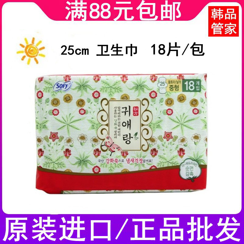 South Korea Imports LG Guiai Lang Guido Daily Sanitary Cotton 250mm Pads 18 Pieces Pure Cotton Aunt no fluorescent