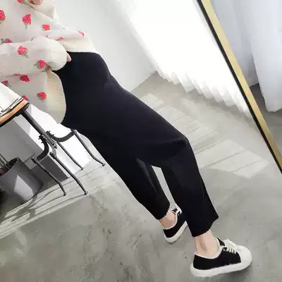Maternity clothes autumn and winter wide-legged pants plus velvet thickened knitted pants wear fashion wool grandma pants loose trendy mom