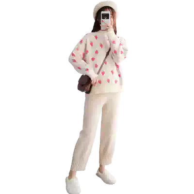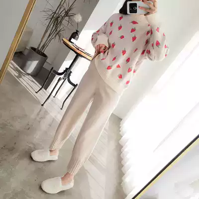 Black knitted pants Rice apricot knitted pants Black plus velvet knitted pants Rice apricot plus velvet knitted pants Strawberry sweater
