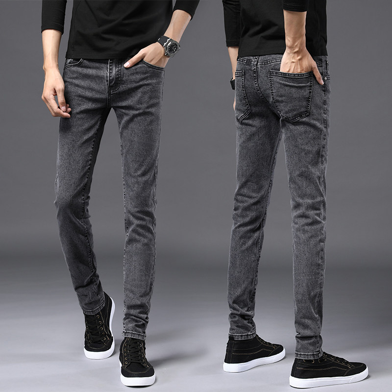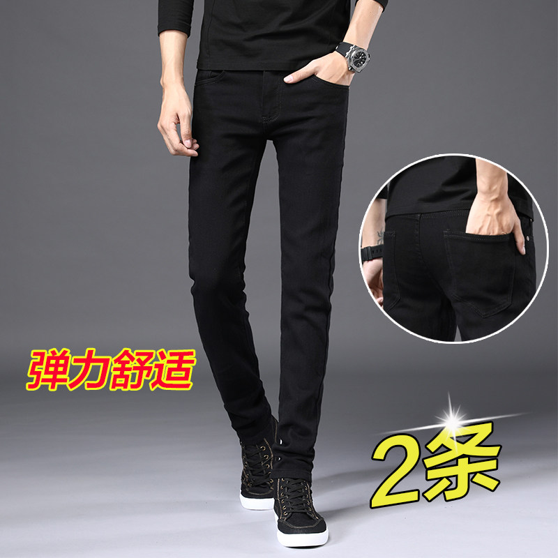 Winter Men Pants Black elastic straight drum casual jeans Men's pants Pants Tide Cards Small Feet for the Han version Trend