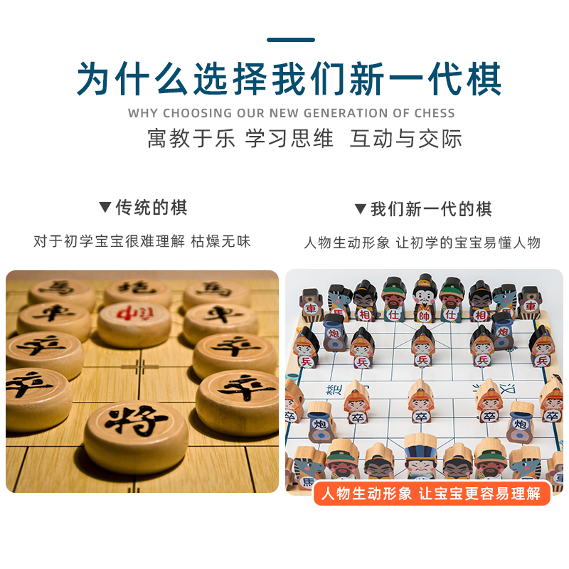 Chinese chess children portable student beginner adult Xiangqi chess board high-grade suit cartoon image
