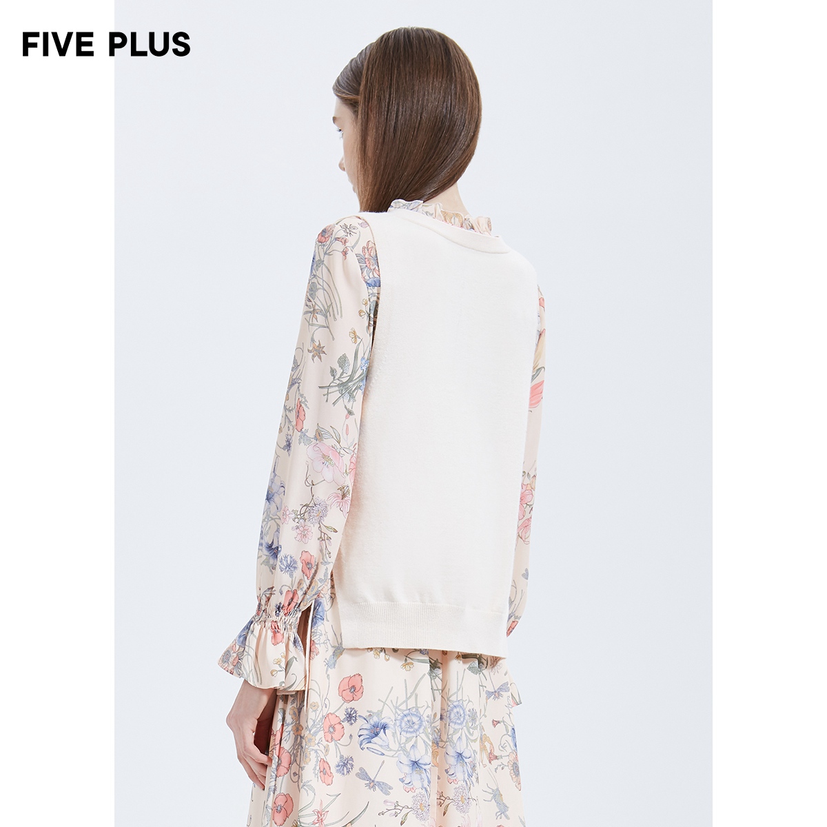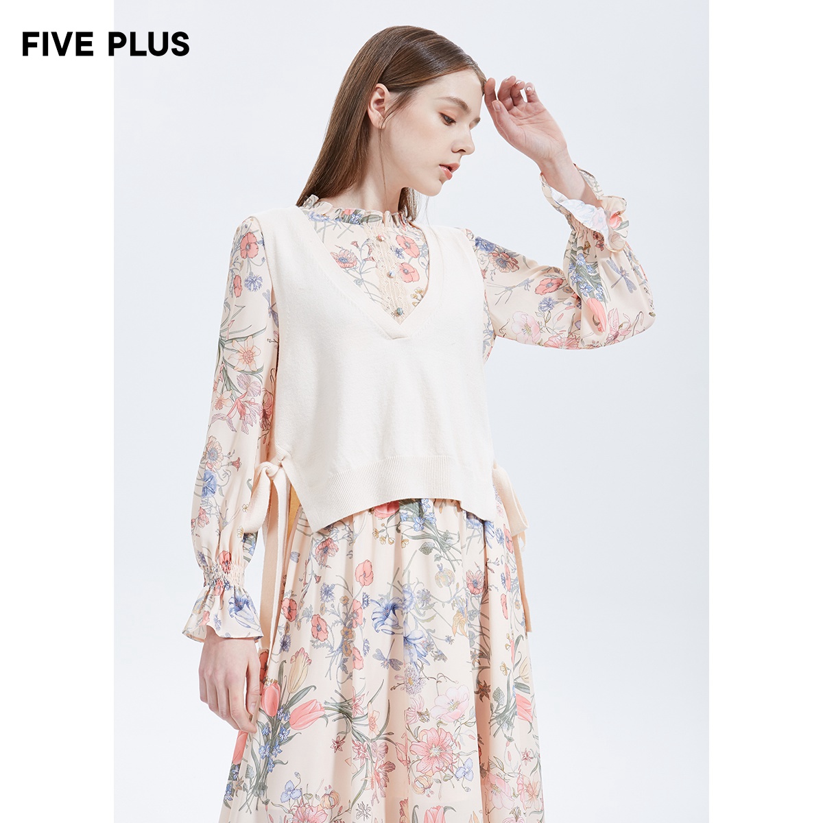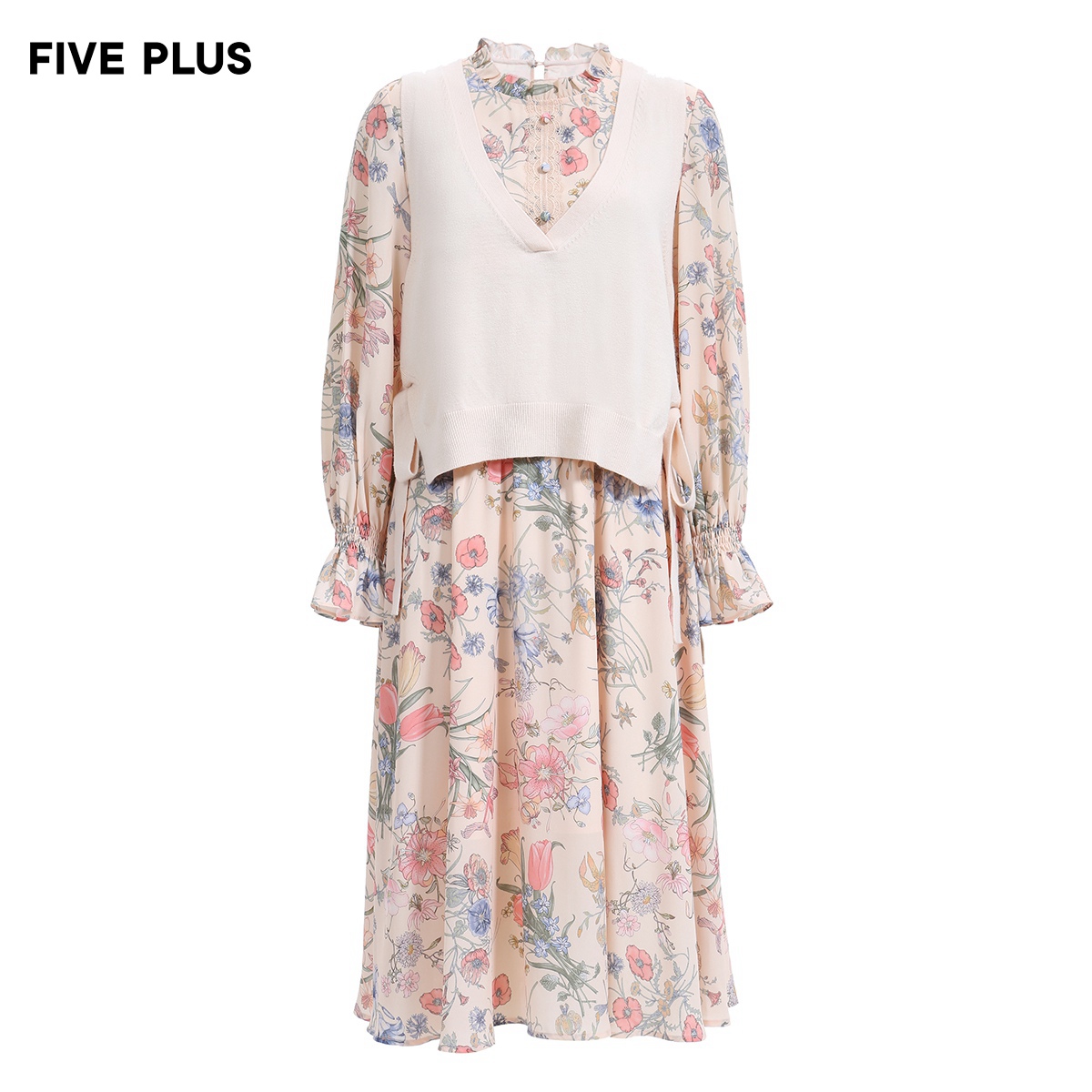 FIVE PLUS Women's Spring printed Chiffon dress two-piece fashion suit flared sleeves high waist