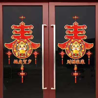 2022 New Year Decorative Door Sticker Window Sticker Year of the Year of the Tiger Spring Festival Decorative Window Painted New Year Sticker Glass Door Sticker