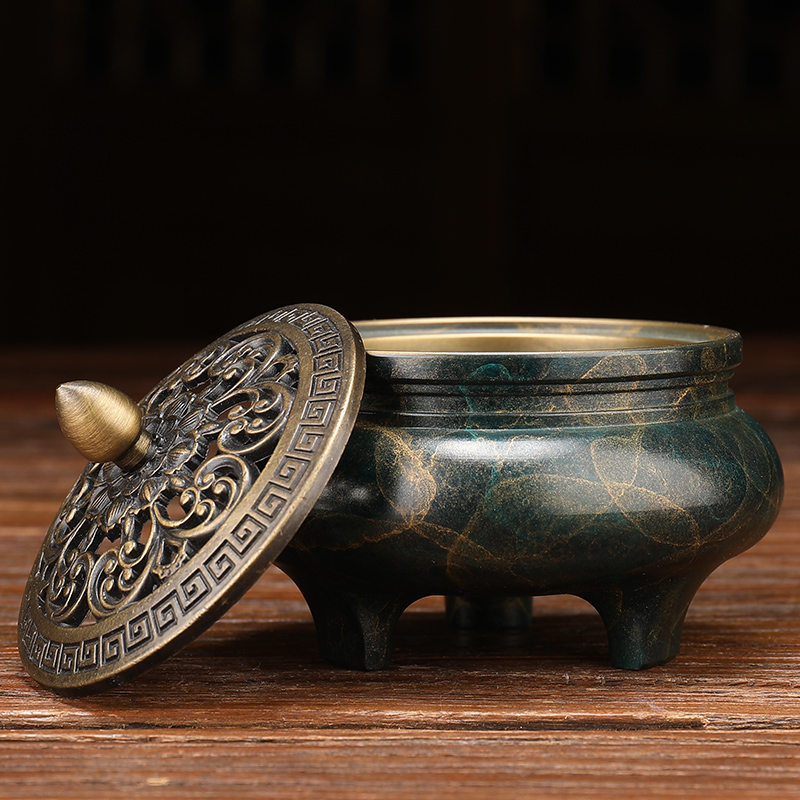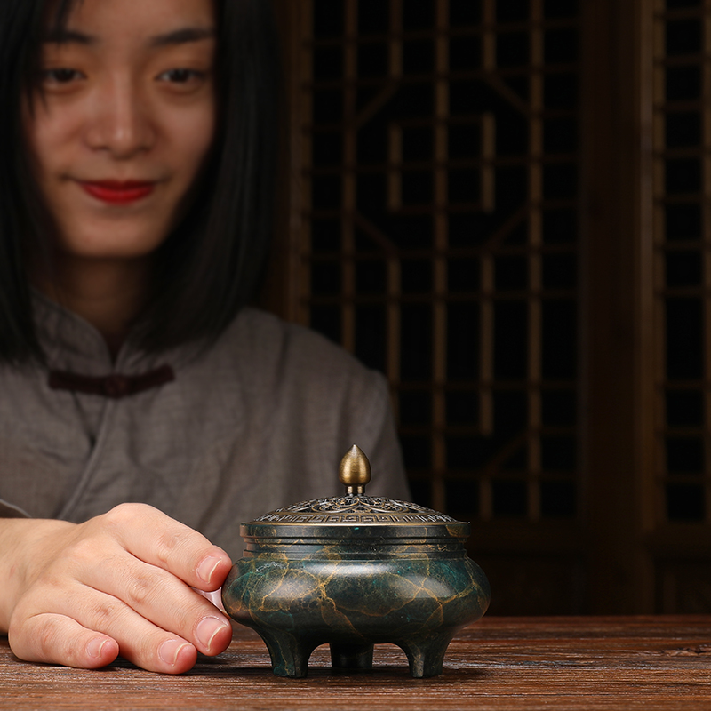 Color Bronze Incense Stove Home Retro Pure Copper Sandalwood Stove Fire Incense Stove Ring Incense Stove Triple tripod Imitation Ancient small number Chinese
