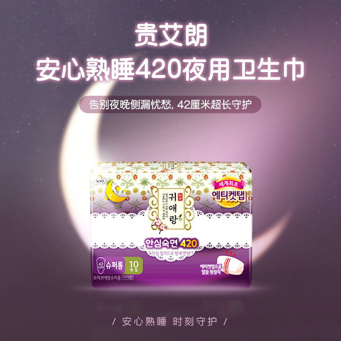 South Korea imports LG Guiai Lang Guido night-time with lengthened sanitary cotton 420mm10 sheet pure cotton Aunt no fluorescent