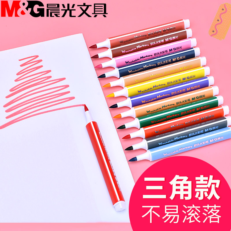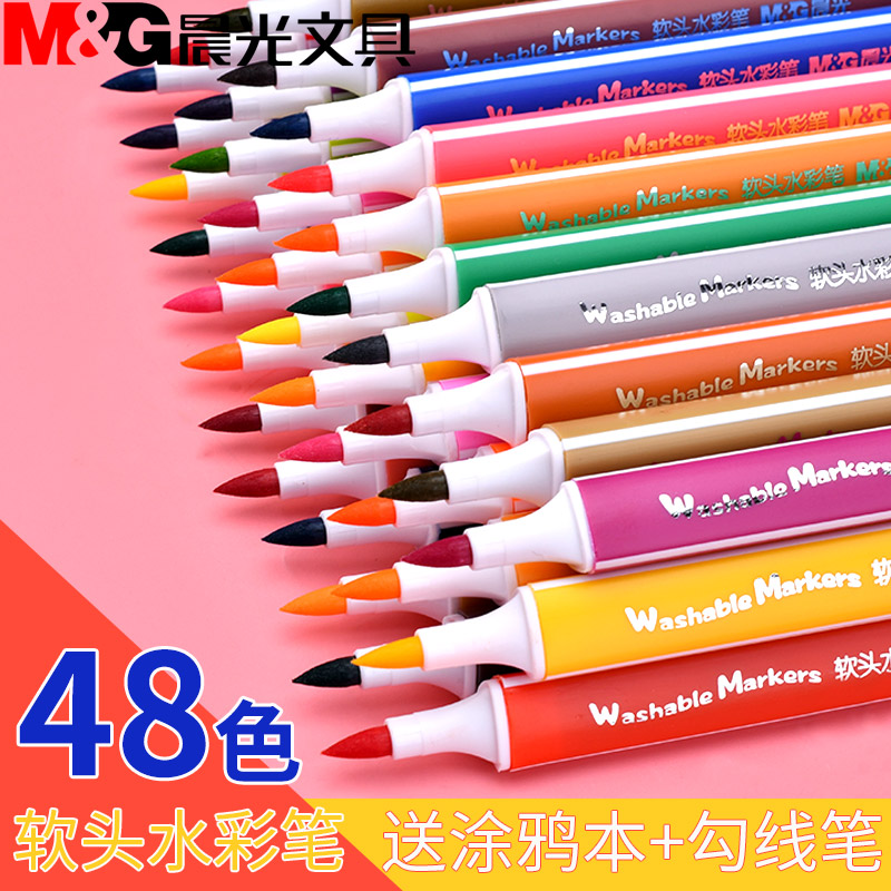 Morning light triangle watercolor pen 48 color soft head watercolor painting color pen 24 color children used with color pen 36 color professional fine art hand painted paintbrush kindergarten washable colored pen suit