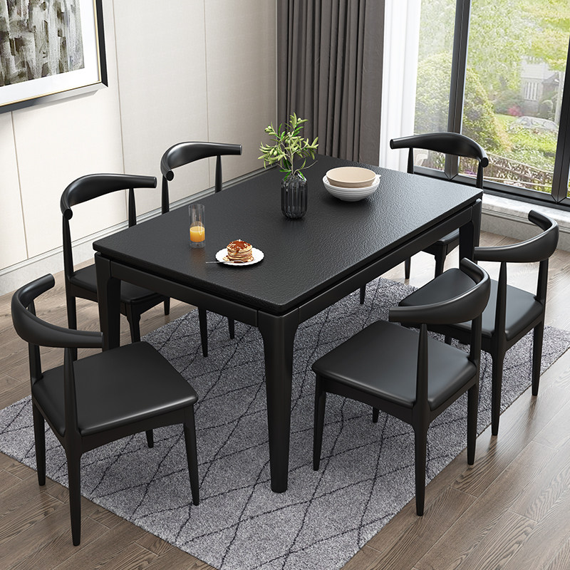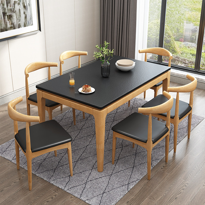 Nordic fire stone dining table and chair combination Modern simple small apartment Full solid wood dining table Rectangular marble dining table