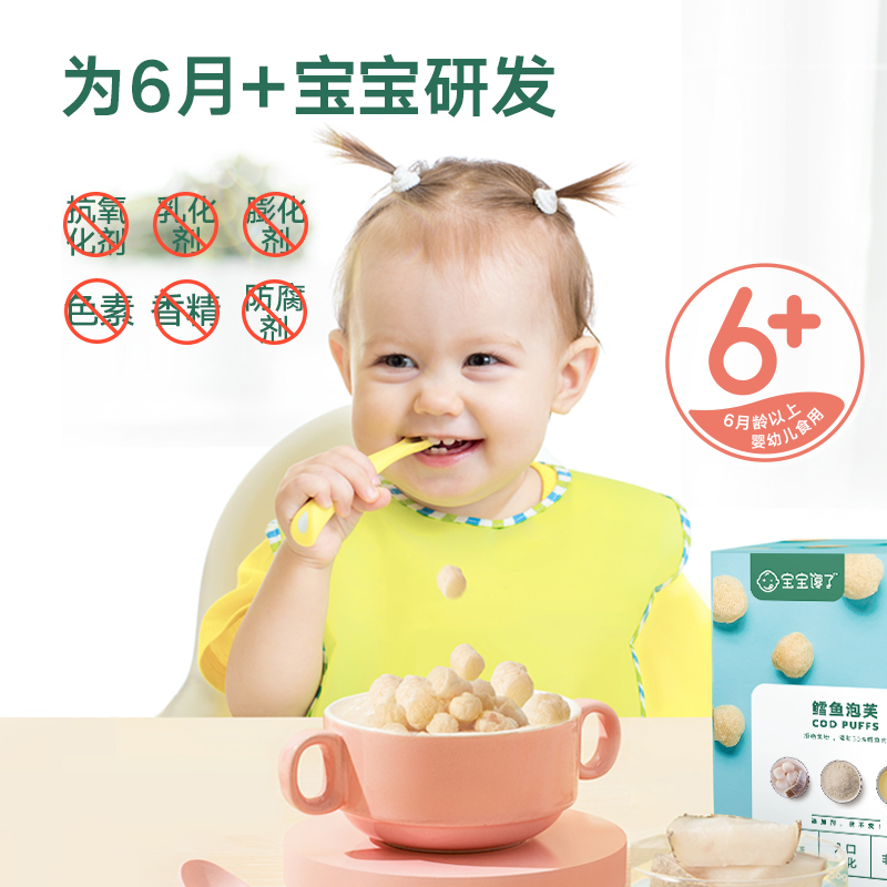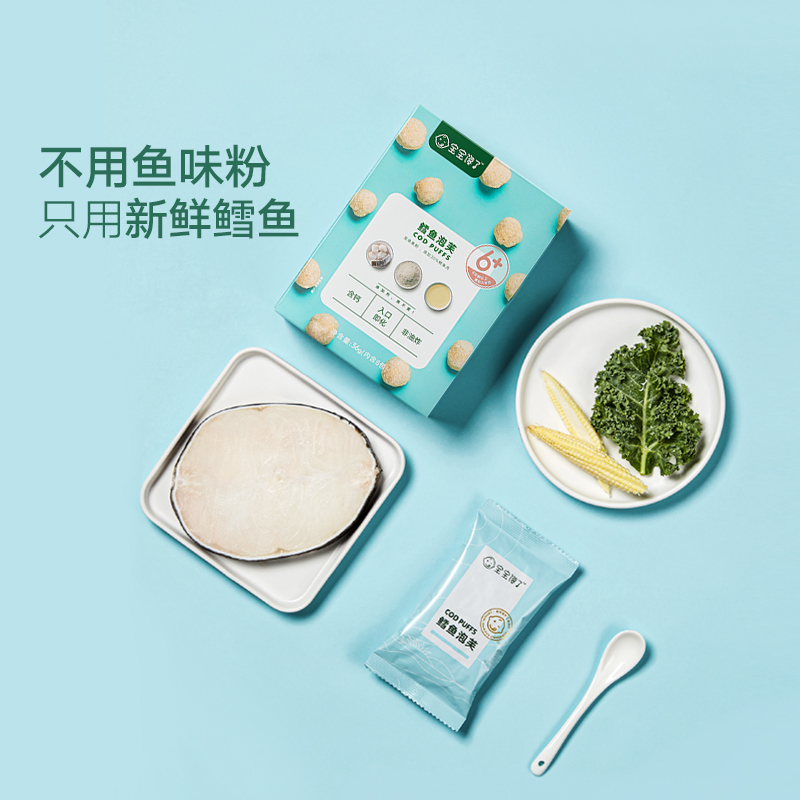 Baby hungry cod puff ball children baby toddler snacks supplement food no added salt 3 box 6 months 1 year old