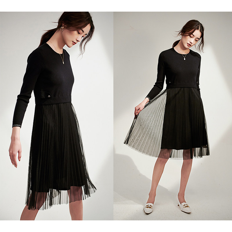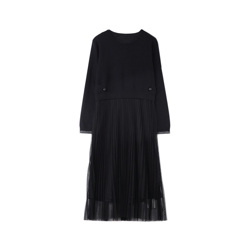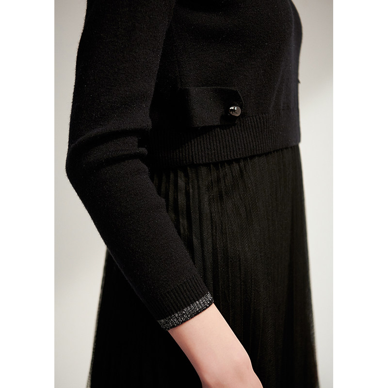 Early cotton spinning dress vintage black fake two-piece knitted sweater spell