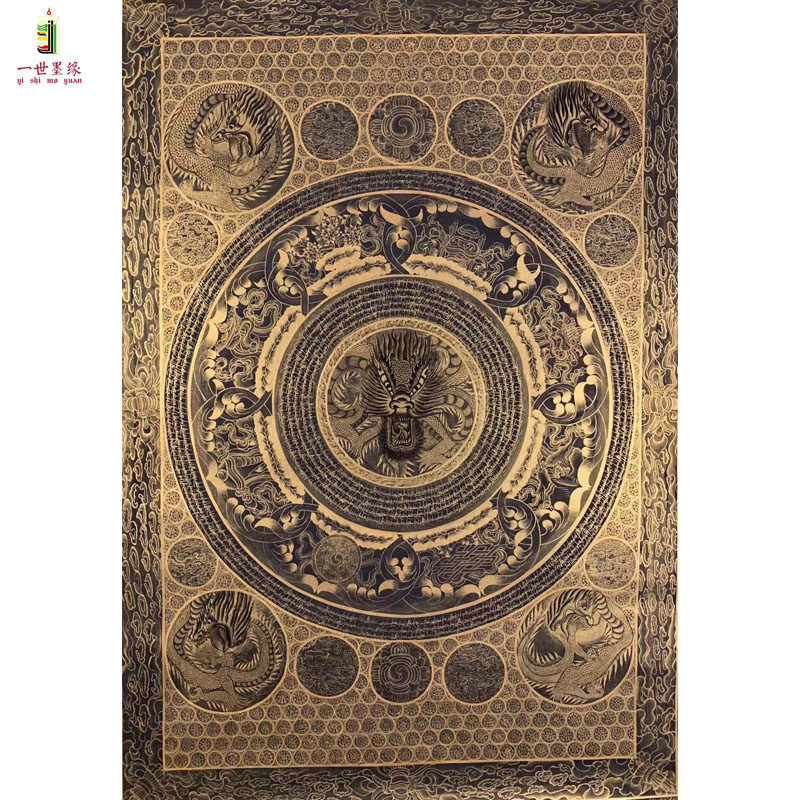 Classic black gold banner 95 Supreme Kowloon Mandala pure hand-painted pure handmade Nepal thangka hanging painting
