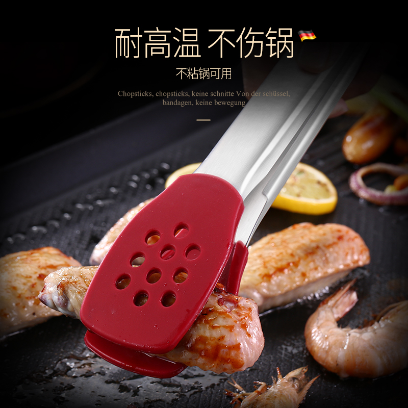 Fried steak clamped silicone 304 stainless steel food clamps barbecue bread clampkitchen with high temperature and hot - proof