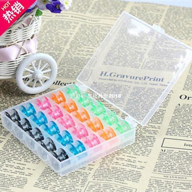 25Pcs Plastic Bobbins Colorful Grid Storage Case Box Spool M
