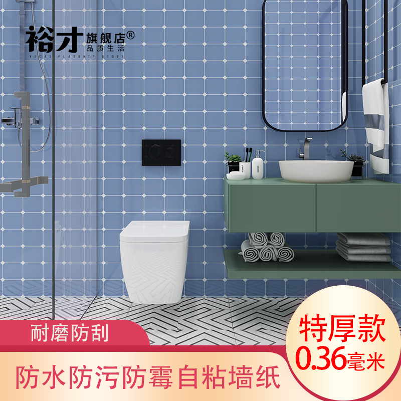 Thickened waterproof PVC grid bathroom sticker self-adhesive bathroom toilet tile wall with simple Nordic style ins