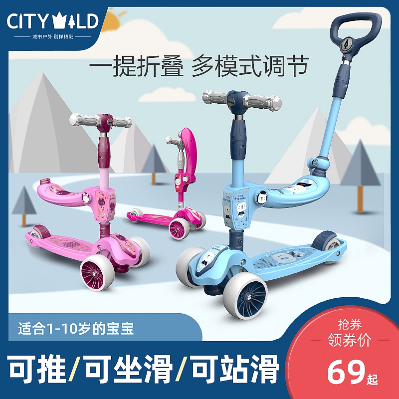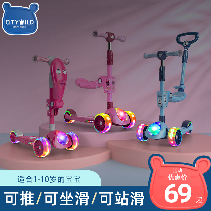 Scooter Children's 3-6-year-old girl baby boy 12 girl Princess'Princess' Pedal can take a ride and slip for the first time