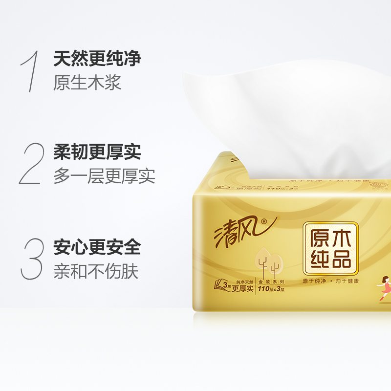 Breeze removable toilet paper Household 5 packs of affordable toilet paper Whole box napkin removable toilet paper Gold wood pure product Fragrance-free
