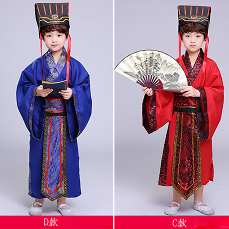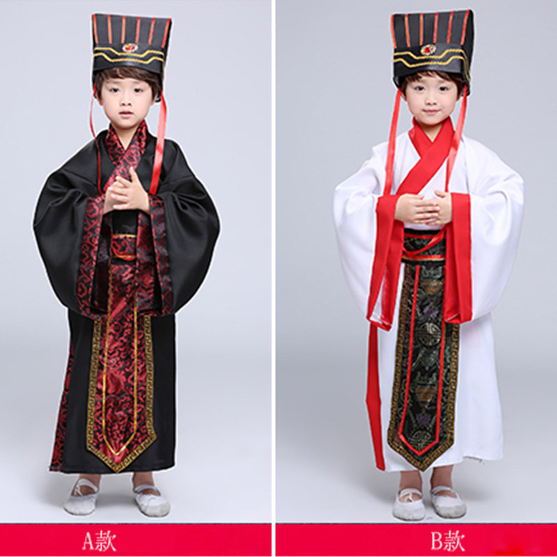 School children's ancient costume primary and secondary school students men and women Chinese style Hanfu Guoxue book boy Confucius Minister Three Kingdoms performance costume