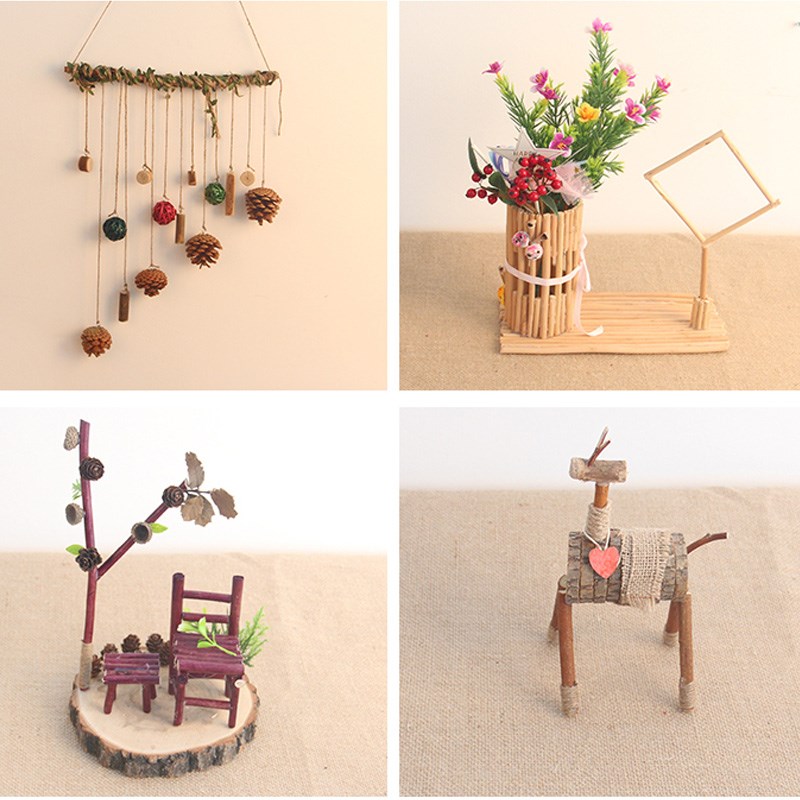 Acorn shell 200g, about 150 pieces of wood chips, 5 pieces, straight 4-5cm thick, 1 rope, 10cm wicker ball, 5cm diameter, 2 pieces, 8 pieces, with pegs, small round wood chips (with skin)