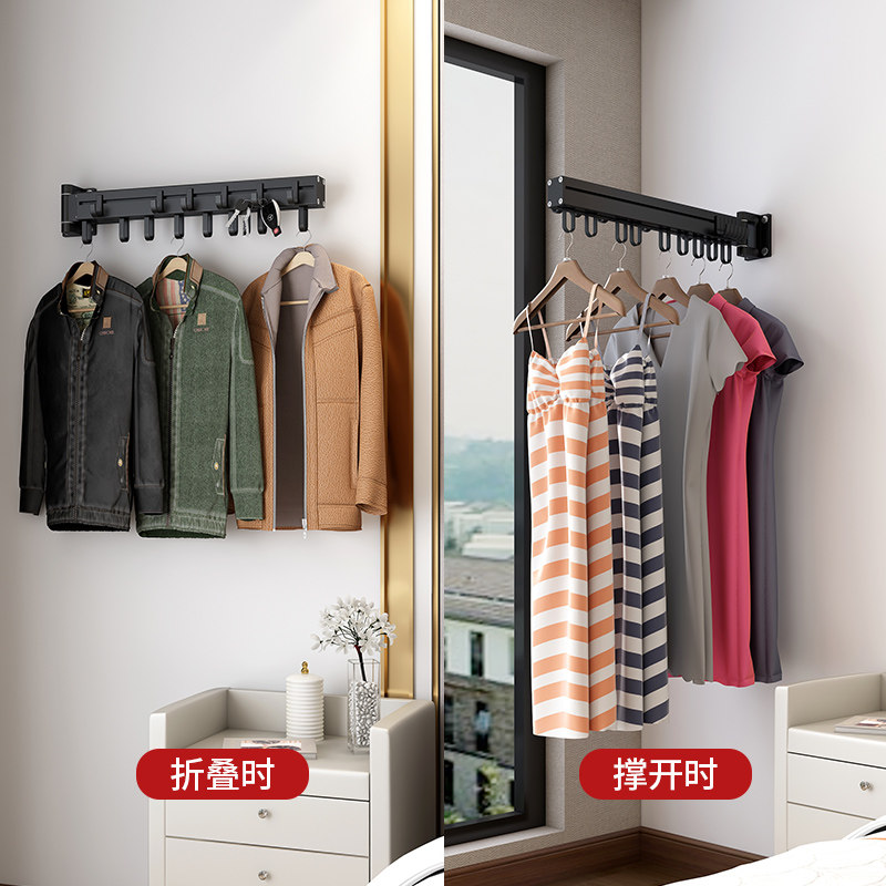 Fixed folding clothes rack hanging rod Household balcony wall hanging clothes drying small apartment indoor home telescopic clothes drying rod