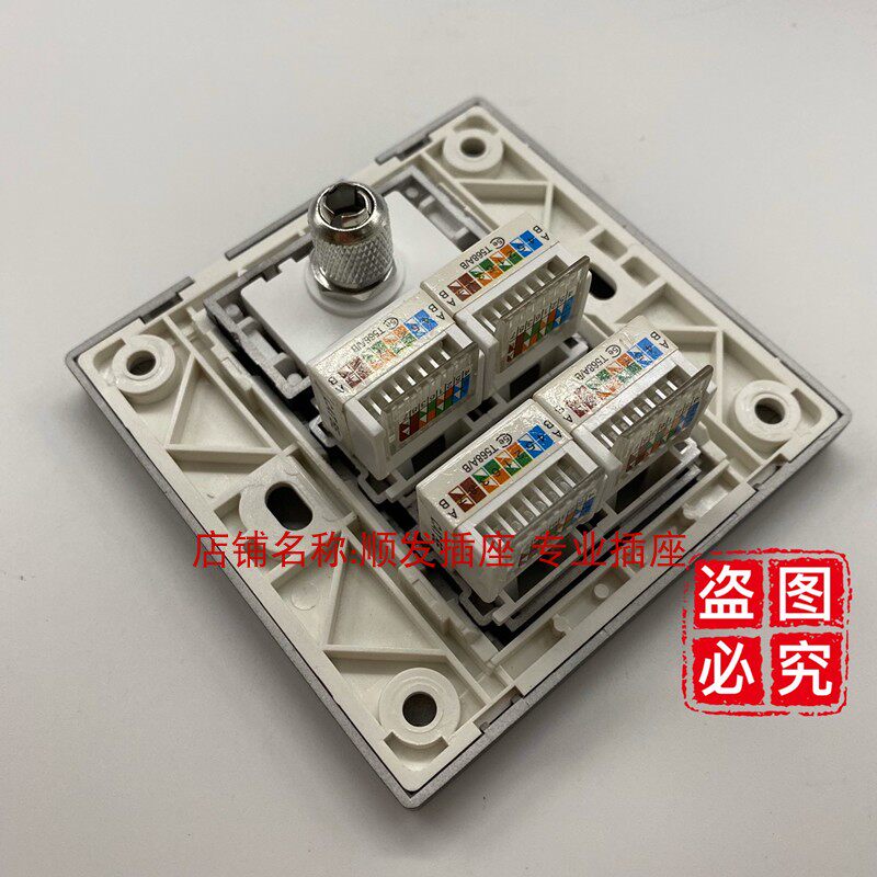 Type 86 Black four-mouth Internet TV panel TV Four computer socket panel Wall inserts 4-mouth Internet online tv