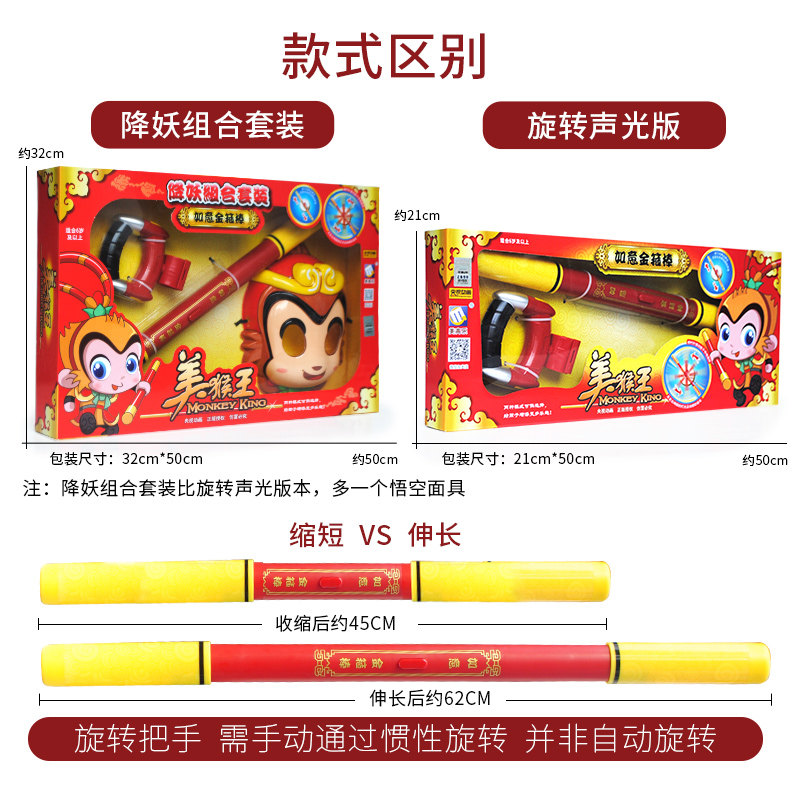 Ruyi golden hoop (non-retractable 2-end launch soft ball) Ruyi golden hoop (key retractable rotating handle) combination set (key retractable rotating handle mask) (upgraded version)