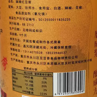 Spicy bean curd bean curd non-Chongqing rush water Yongchuan Specialty yellow dasao 450g bottle